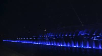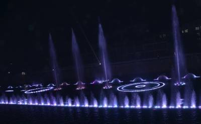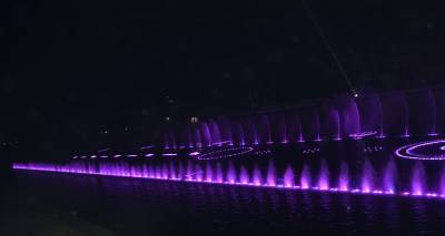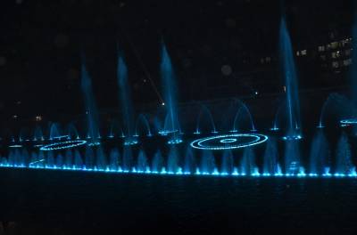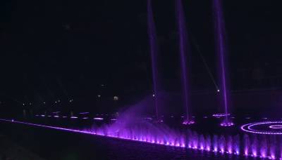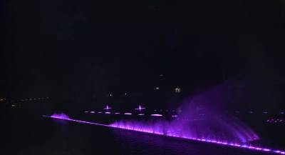 9月26日晚,恩施自治州宣恩县土家苗寨“音乐喷泉”沿着贡水河“愉快奔跑”,展现绚烂身姿。据悉,宣恩县贡水河上的音乐跑泉于今年7月1日初次开跑,结合城市之光与音乐设备,给市民带来视觉和触觉极大的享受。(本报世界网 邓杰)