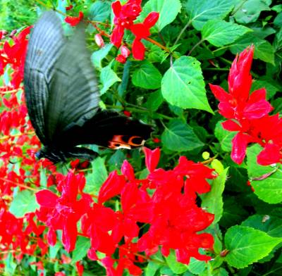 竹溪:串串红花迎“十一” “十一”前夕,竹溪串串红还在怒放,引来蝶儿聚足欣赏,令人陶醉。.本报视界网 王忠春 摄 电话13636203107