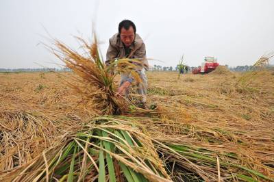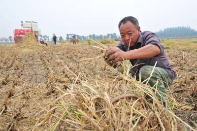9月27日,在 湖北省襄阳市襄州区东津镇朱彭村1组,农民彭顺军一家将倒伏的 水稻人工收割后进行脱粒,确保丰收。目前,湖北襄阳市290万亩 水稻全民进入收获季节,连续10多天的 阴雨天气,造成成熟水稻无法收割。从9月21日天气放晴后,襄阳市组织了 1.4万台收割机抢收,目前,水稻 收割抢收过半。26日夜晚,湖北襄阳再次降雨,农民冒雨抢收水稻,确保颗粒归仓。
