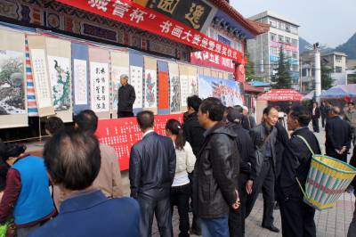 利川举办迎国庆书画展 2011年9月27日上午,利川市城管局和利川市老年书画协会举办了“城管杯”迎国庆书画展,共展出了歌颂祖国和城市建设的书法美术作品267件,市民涌跃参观,收到良好效果。 郜全鑫 陈小林 摄