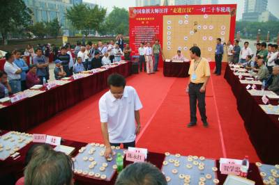 28日,江汉区金秋健身旅游节在西北湖广场开幕。象棋大师汪洋受邀现场表演一对二十车轮战,吸引了众多象棋爱好者前来观战。 > > > 张垠 摄 > > > > 江汉区园林局 430022