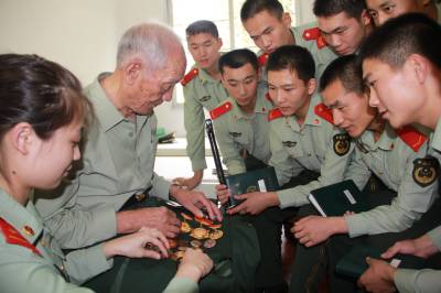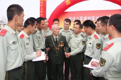 国庆前夕,抗美援朝特等功臣、一级战斗英雄柴云振来到武警湖北总队二支队九中队讲传统、忆传统,激励官兵“牢记光荣传统做忠诚卫士,发扬革命精神当精武标兵”。
