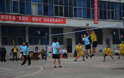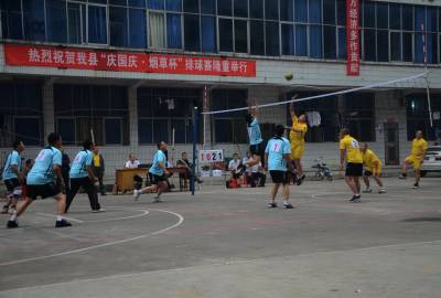 国庆前夕,恩施自治州宣恩县这座古朴的土苗山寨用自己的方式向祖国“母亲”62岁生日献礼。9月28日下午,宣恩县烟草公司排球场上,啦啦队掌声如潮、呐喊声震天,双方排球代表队正憋着劲儿“大比拼”,用手中的“小小”排球向祖国“母亲”建国62周年“贺寿”。