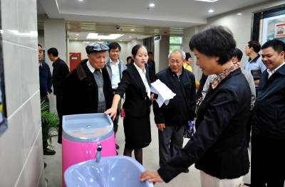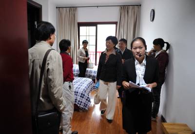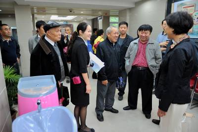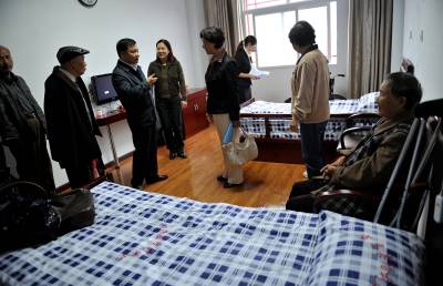 9月29日,宣恩县科局级干部在县利福利中心与五保老人交流,了解他们的生活情况。 九九重阳节、国庆节临近,宣恩县党政领导、各乡镇党委书记、乡镇长以及县直机关负责人共100余人到该县福利中心,与五保老人同话家常,共迎国庆、重阳佳节。(本报视界网 宋文 摄)