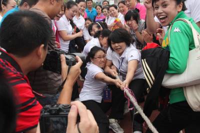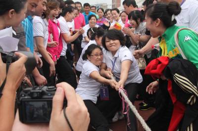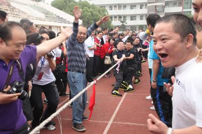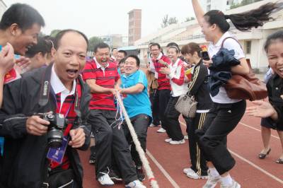 趣味运动迎国庆 29日,天门市地税系统干群在拔河。当日,该系统举行迎国庆趣味运动会,来自全系统11个代表队,268名干群进行了集体跳绳、拔河比赛、滚雪球、团结一致、螃蟹背西瓜、纸衣往返接力、倒跑接力赛等10个趣味项目的比赛,充分展示了地税系统干群良好的精神风貌,喜迎国庆佳节的到来。(本报视界网刘银斌摄)