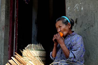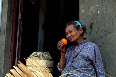 从老奶奶吃柿子的表情,可看出......