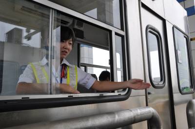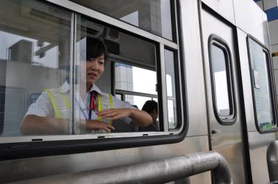 9月25日,麻武高速麻城东管理所正式拉开“治庸问责”大幕,剑指“庸懒散软”等行为。图为收费站微笑服务,欢送来宾情景。本报视界网徐友才摄