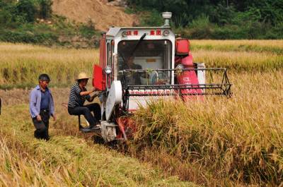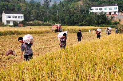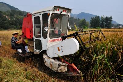 9月29日,郧县南化塘镇南化塘村村民正在雨后利用收割机分户收割水稻,亲戚朋友都前来帮忙,截上日前郧县全县60万亩秋作物除芝麻和花生受水灾影响损失以外,玉米和水稻收获已经过半。 图为南化塘村村民正在利用收割机分户收割水稻时的情景。 周家山摄 郧县城管大队 电话13872840078 邮编442500