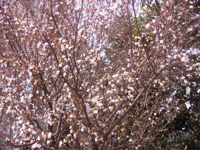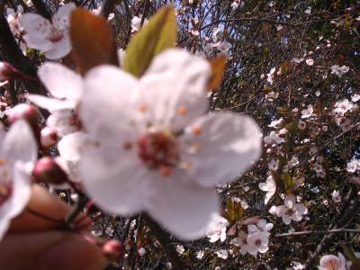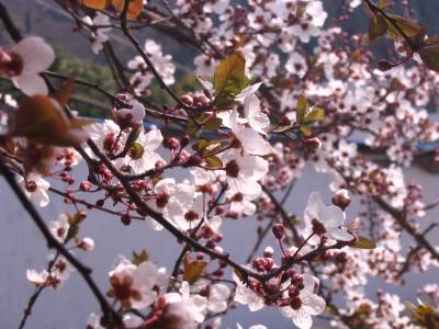 > 校园李花静悄悄的开