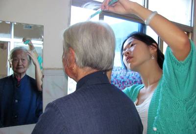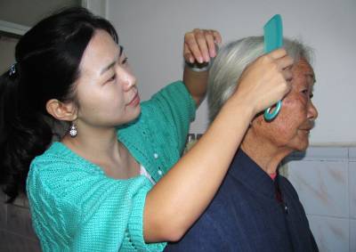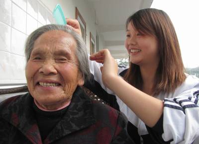 9月30日,在湖北省十堰市郧县福利院,志愿者正为老人们梳头。当日,该县中医院与医药卫生学校到福利院联合开展“九九重阳节,情暖老人心”主题教育活动,参与志愿者为老人们带去了祝福,带去了温暖,也受到了一次敬老、爱老教育。