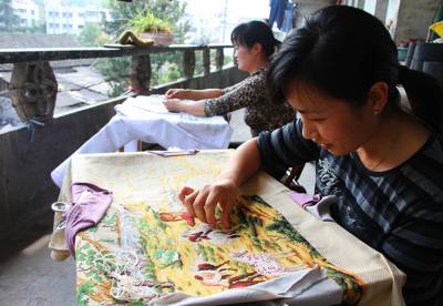 宣恩一巧妇绣成巨幅十字绣为国庆献礼
