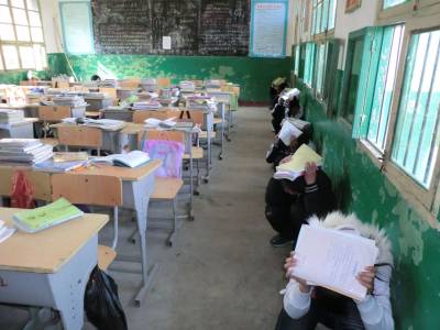 > 郧县黄柿中学举行防震安全疏散演练