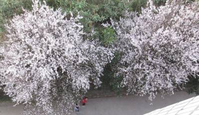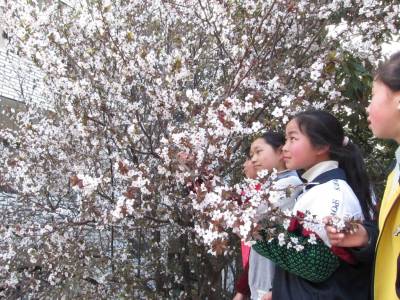 > 课余校园赏李花