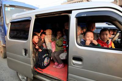 2011年11月16日下午,在武汉市江夏区纸坊街一辆微型面包车载着11个幼儿行驶在路上,司机将把他们从幼儿园一一送回家。孩子们全然没有意识到安全隐患的存在,还露出天真的笑容。