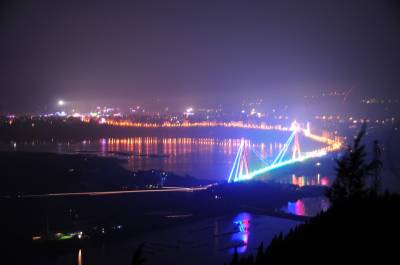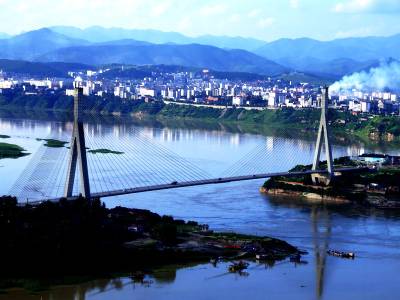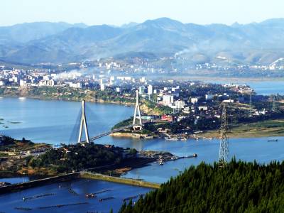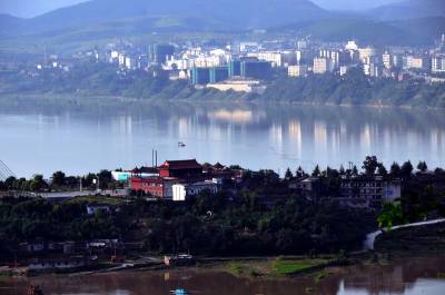 图为郧县的老城画面、沙盘和新郧县城区。(周家山 摄)
