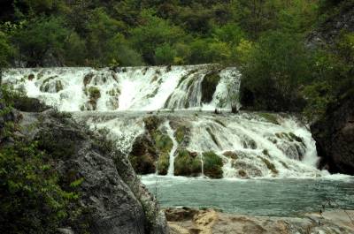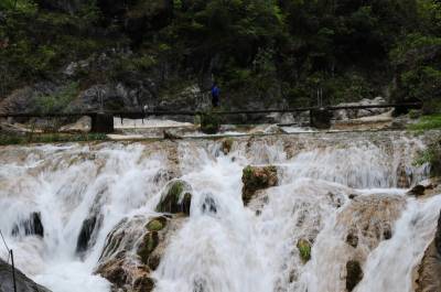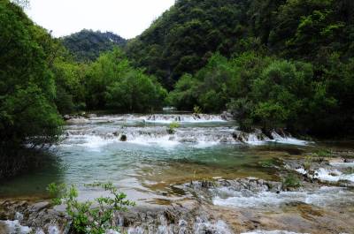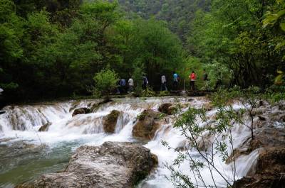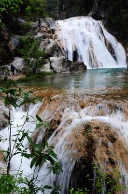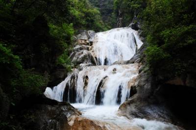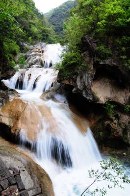 郧县虎啸滩自然风景区位于郧县大柳乡,该景区峡谷内集山、壁、洞、泉、溪、瀑于一体,茂林修竹,古木参天,无山不奇,无水不秀,含惊、险、奇、丽、秀、峻逸之美,被中外游人称之为“湖北的张家界”。 图为郧县虎啸滩自然风景区内的瀑布及景点。 周家山 摄