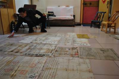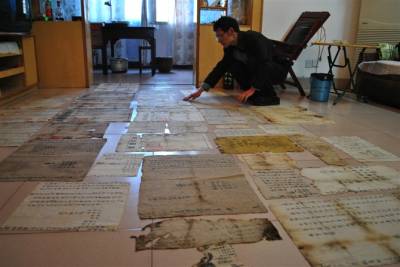 最近,家住丹江口市丹三巷水文小区的付子田回到郧西县城关镇黄石梁村老家时,意外地发现了一批家中珍藏了距今约200年历史的地契。这批纸张已发黄文物中大致分三类,第一类是民间的土地房屋,宅地交易文件,也就是契约,其中大部分是官契,还有一部分是民契,这些契约主要从道光11年到民国29年期间;第二类是宗教类的,这中间有一张白龙图,还有一张三字经形式的《神训格言》;第三类是军粮缴纳凭据。这批文物的发现真实地再现了1832年至1953年间我国的土地所有权制度、土地权属变更及对土地的管理制度,对当时政府的沿革和地方历史及宗教文化的研究也具有一定的价值。