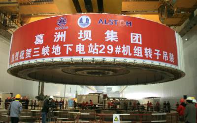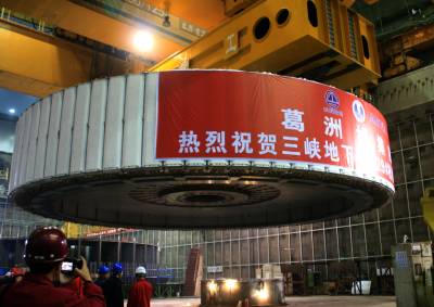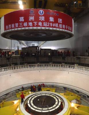 当日,三峡地下电站29号机组转子成功吊装到位。该机组转子由葛洲坝集团公司机电项目部安装,是今年成功安装的第四台转子,也是该项目部在三峡工程安装的第十六台转子。29号机组将于2012年元月进行充水发电调试。三峡地下电站的主要任务是提升三峡已有发电机组检修备用容量和调峰能力,并提高长江水能利用率,与位于三峡大坝左右岸的26台机组统一调度和运用。三峡地下电站设计安装6台70万千瓦发电机组,目前已安装运行了3台,其余3台将于2012年汛前投产发电。