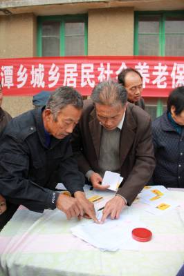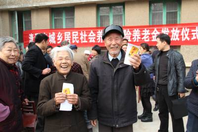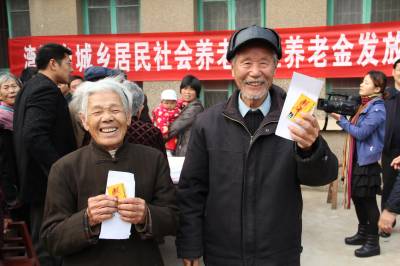 汉川农民喜领新农保金 11月18日,湖北省汉川市湾潭乡东风村70多岁的村民周协坤夫妇喜领养老保险金银行存折。像周协坤老人一样,东风村117名老人率先领到了今年5个月的275元城乡居民社会养老保险基础养老金。今年,该市科学运作,扎实推进,广大农民朋友热情高涨、参保踊跃,60岁以上农村居民从2011年7月起每人每月可领取55元基础养老金。 本报视界网刘晓平 刘定勇摄