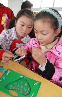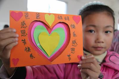 2011年11月18日,湖北省十堰市郧县城关镇第一小学的学生正展示自己制作的感恩节贺卡。在感恩节到来之即,该校开展了感恩节贺卡制作比赛,通过向老师、父母送贺卡的方式表达感恩之情,教育学生从小学会感恩、懂得感恩。 (湖北郧县新闻宣传中心 曹忠宏 黄健摄 邮编442500电话13294212877)