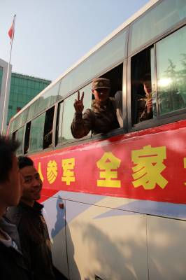汉川首批新兵启程进藏 11月19日上午,汉川市40名新兵离开家乡前往西藏军营,这是汉川今冬首批新兵。据介绍,该市今冬应征入伍青年500人,将陆续奔赴部队。 本报视界网刘晓平、钟超摄