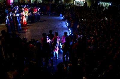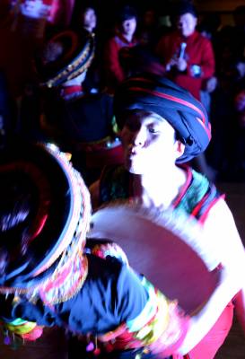 11月19日晚上拍摄的宣恩县首届大型本土文化篝火晚会演出现场。当日,取材于宣恩县首届土家族、苗族、侗族民族民间大型本土文化篝火晚会。此次篝火晚会由土家族、苗族、侗族民族本土文化曲目组成,展现出了浓郁的民族风情。 篝火晚会是西南地区许多少数民族的一种特殊风俗,它原本只是少数民族村民们一种自我娱乐的方式,随着时间的流逝以及文化的传播,篝火晚会这一形式广泛盛行于各族人民之间,已从原生态式走向了舞台,成为了人们的一种生活方式。 本报视界网 戴俊 摄