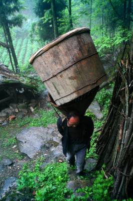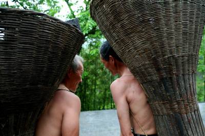 鄂西土家族苗族自治州被称为背篼上的民族,家家户户大人小孩都离不开背篼,最出名的就是笮背篼。 在恩施前山大峡谷和利川市团堡镇朝南村、阳河一带,交通不便,村民出山买卖东西,全靠一种底部窄、口宽大的竹背篼背东西,他们称为笮背篼,祖祖辈辈的生活全装在笮背篼里。所以,当地人至今沿袭着背笮背篼的习惯,他们的生活全在背上。