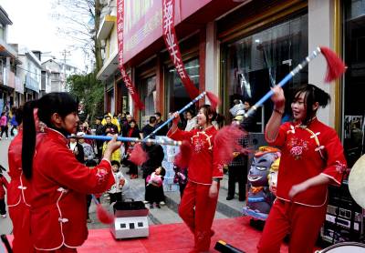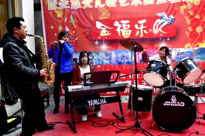 近几年来,该乡100多名文艺爱好者自筹资金购买了舞狮、表演服饰、锣鼓、音响等活动器材,自发成立了5文艺表演队,他们自编了舞狮道具、旱船、快板、秧歌、莲湘、耍耍等几十套节目,利用农闲季节或农民家中过红白喜事义务为周围群众演出。他们常年活跃在乡村,排演当地群众喜欢的文艺节目,为乡亲们在劳动之余排遣疲劳、增添乐趣,极大的丰富了农村的文化生活,为当地群众献上丰富的文化大餐,深受欢迎。(本报视界网彭绍峰摄)