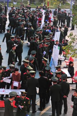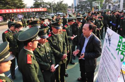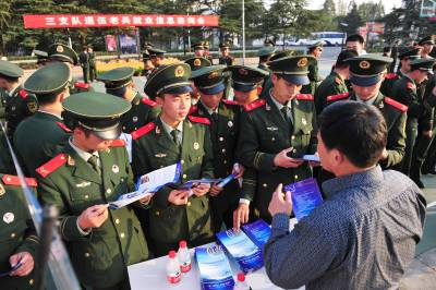 新的《退役士兵安置条例》颁布后(自2011年11月1日施行),武警湖北总队针对退役士兵安置政策变化和老兵特点,有选择性地邀请用人单位来部队,为退伍老兵举办专场招聘会,解决他们的后顾之忧。