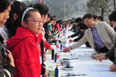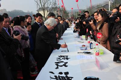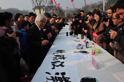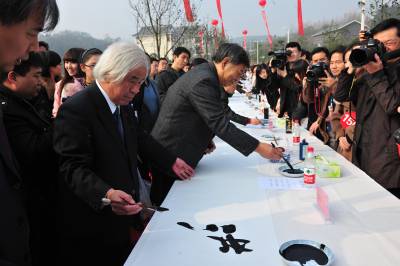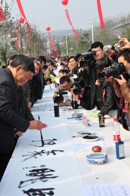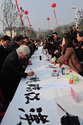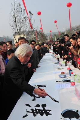 11月20日中日韩三国120名书法名家在在湖北襄阳凤凰温泉同书“襄阳好风日”。由中国艺术院、中国书法院、日本中部书道会、韩国书艺协会主办、湖北和兴集团凤凰温泉承办的中国·襄阳第四届中日韩书法国际年展 11月20日上午9时30分,中日韩国际书法年展开幕式将在凤凰温泉山水大舞台正式揭幕。中日韩百名书法家将在怡情湖旁创作“襄阳好风日”百米长卷。