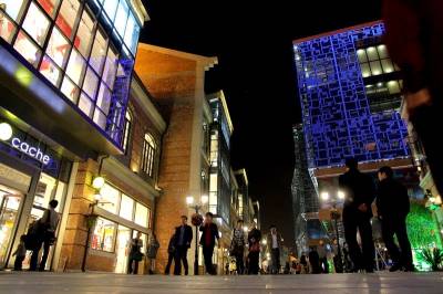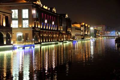 在灯光映衬下的楚河汉街美轮美奂,犹如梦境,是消费者休闲购物的天堂,也吸引了数不清的摄影爱好者前来拍摄。