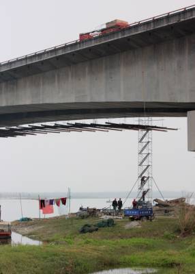 湖北省汉十高速公路是国家西部大开发重点线路福州--银川高速公路的重要组成部分。它连接武汉、襄樊和十堰,既是连接我省中西部的重要通道,也是我省的汽车工业走廊。为保障高质量运行,汉十高速公路新一轮五年养护工程规范起步,部分桥梁已经开始进行维护,图为老河口-谷城段汉十高速公路汉江大桥的维护现场。
