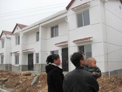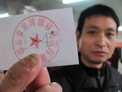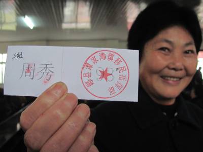 2011年11月21日,湖北省十堰市郧县谭家湾镇十方院村内安移民周秀正展示自己抓的房号。郧县谭家湾镇移民安置点房屋建设接近尾声,当日该镇在十方院村举行抓阄分房仪式,本次抓阄分新房涉及127户455人。因南水北调,2011年,郧县要完成10个乡镇99个村28817人的县内移民安置任务,目前各项工作正稳步推进。 (湖北郧县新闻宣传中心 曹忠宏 骆铭峰摄 邮编442500电话13294212877)