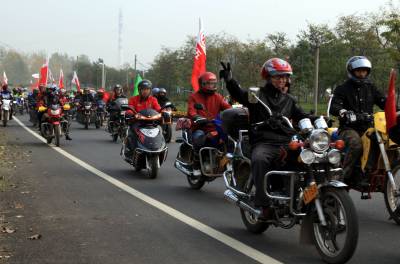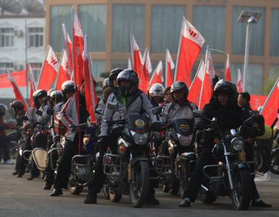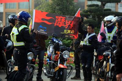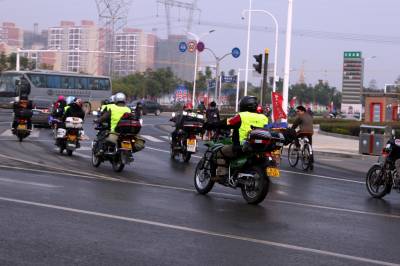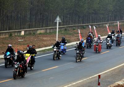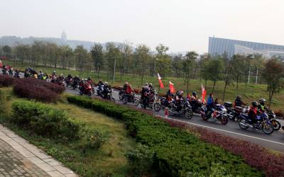 2011年11月13日上午,来自湖南、宜昌、鄂州、咸宁、武汉等地的近千名摩托车爱好者相会在武汉市江夏区,上午8时30分从江夏庙山梦天湖出发一路骑摩托车到金口中山舰博物馆游览,其乐融融。
