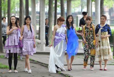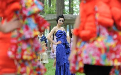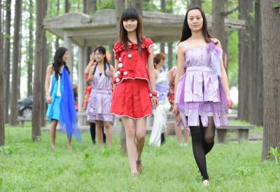 江汉艺术职业学院的大学生在进行环保时装秀表演。大学生利用废旧床单、衣服、窗帘裁剪成环保时装,在校园进行展示,呼吁同学们珍惜资源、善待地球,迎接4月22日第42个“世界地球日”的到来。今年世界地球日的主题是“珍惜地球资源 转变发展方式”。