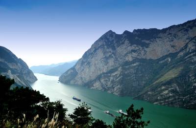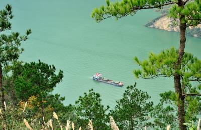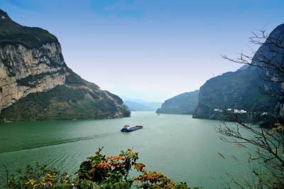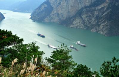 2011年11月19日,长江三峡湖北秭归段链子崖水域,船舶穿梭,秋水荡漾,江清岸绿,如同一幅风光旖旎,引人入胜的壮丽画卷。自10月30日三峡水库水位蓄至175米,千里峡江再现迷人风光,“黄金水道”的功能全面实现 。(王家满摄)