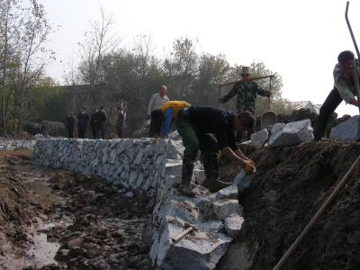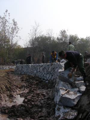 11月22日,施工人员在用石块为黄梅县孔垅镇洪铺村“当家塘”浆砌护坡。入冬以来,黄梅县全面推进小河流、小沟渠、小塘堰等“五小”水利工程,着力建好“家门口工程”,掀起水利建设高潮,提升全县农田抗灾增收能力,为来年农业丰收提供保障。(本报视界网 吴志雄 摄)