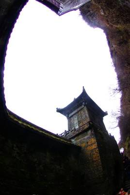 武当山紫金城,门牌阁楼分得清,人走人门,神走神门,鬼走鬼门,各自朝拜,各尽各心,武当山南天门有三道门,中为神门常年关闭,只有皇帝可以出入;东为人门,是实际上的出入口,西为鬼门,从正面看有门但封闭,其实此门之后就是山岩。进入南天门既进入天阙。