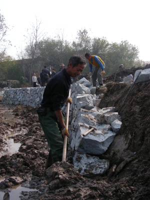 11月22日,施工人员在为黄梅县孔垅镇洪铺村“当家塘”石砌护坡。入冬以来,该县大力推进小河流、小沟渠、小塘堰等“五小”水利工程建设,全面掀起水利建设高潮,夯实农田抗灾增收能力。(本报视界网吴志雄 摄)