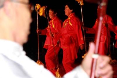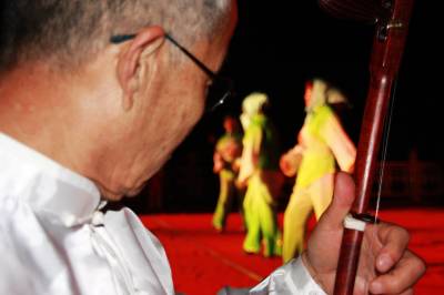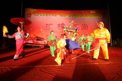 11月22日,竹山县城关镇民间艺术团成员在表演节目。当日,正值竹山县 “两会”(人大、政协)召开之际和该县城关镇民间艺术团成立之日,艺术团精心编排具有地方特色的民间节目,在城关镇堵河广场为观众献上了精彩的演出,丰富了居民的业余生活。(本报视界网 章磊 摄)
