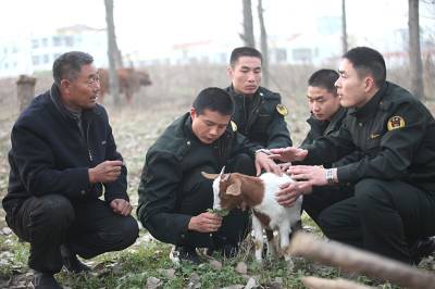 11月24日,武警荆门市支队九中队养殖基地技术顾问、养羊大户龚士保来到这里,为即将退伍的老兵们进行最后一次养殖技术义务辅导。分别时,他叮嘱这些有意回乡发展养殖业的老兵们好好干,有什么技术问题,加强和他联系。 本报视界网 许中华 摄