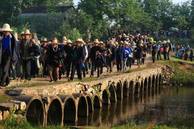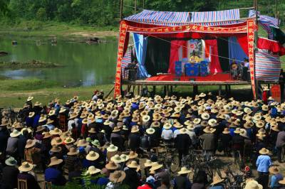 农闲时分,乡亲们请来戏班,稻场上、田畈里,男女老少过节一般,日夜上演精彩的楚剧大戏,戏迷们过足戏瘾,好不惬意。