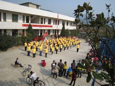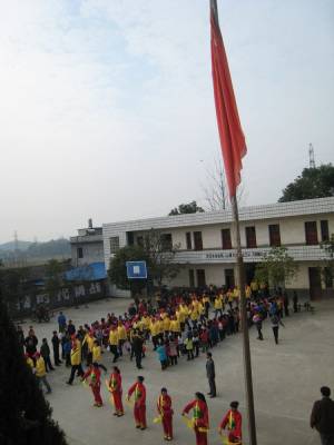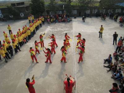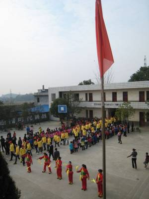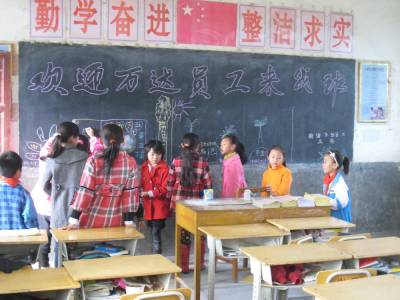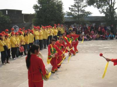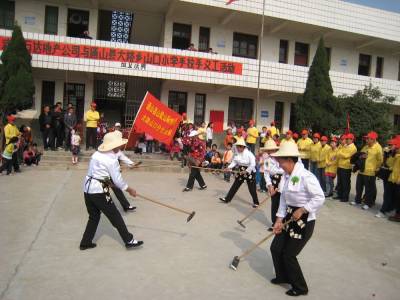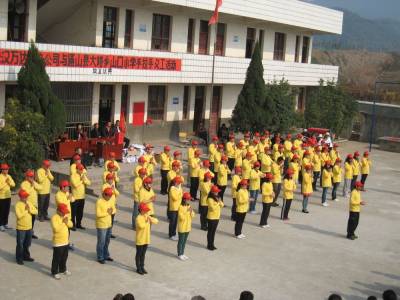 仪式结束后,公司员工深入到班级同小朋友们互动谈心,并送给学生们精致的小礼物。接着,公司员工集体为山口小学师生表演了一场精彩的“感恩的心”手语操。为表答谢,山口村山歌山鼓协会和文艺表演队代表学生家长表演了腰鼓和山歌山鼓节目。