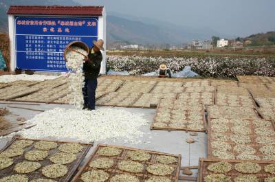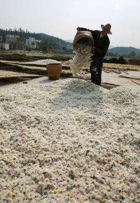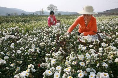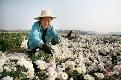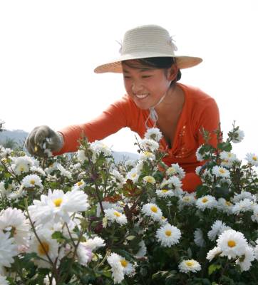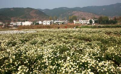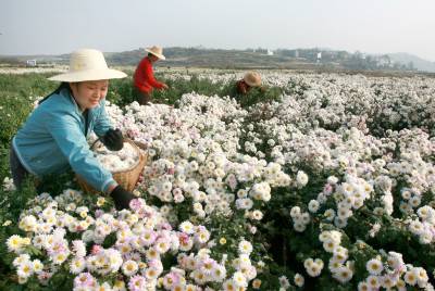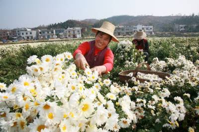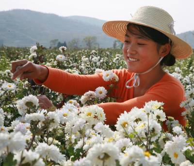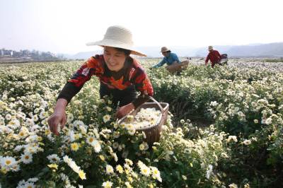 初冬时节,麻城市福田河镇的白菊喜获丰收。据了解,该镇菊花种植历史悠久,早在公元997年就有种植。近年,镇党委、政府充分发挥这一传统产业优势,结合现代消费与保健需求,致力做活做足菊花产业发展文章。如今,“麻城福白菊”以其独有的品质特征,与浙江杭白菊、江苏盐城白菊齐名。目前,全镇菊花种植面积达到2.4万亩,总产量2400吨,系列总产值1.96亿元,菊农单项年人均增收3000元以上,产品已打入马来西亚等东南亚市场。图为该镇菊农喜采菊花。