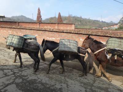 深山骡子运输队 某供电公司要在竹山县潘口乡小漩村境内的高山顶上建高压线塔。专门从广西请来骡子运输队运送混泥土、石料。(王定生 摄 竹山县潘口乡小学邮编442211 电话13733538771