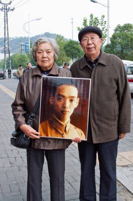 2011年11月11日,史家后人带着史恩华、史恩荣两位英雄的遗像登上72年前的笔架山阵地,凭吊祭奠英烈。(文:史艳)