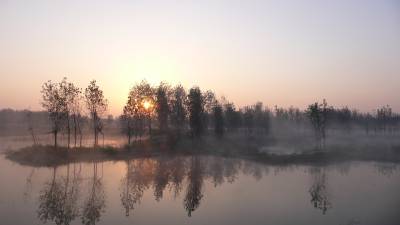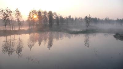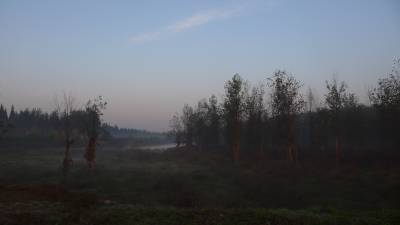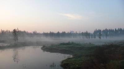 宜城市-汉江岸边的一座美丽的城市。早晨6时多来到江滩,太阳初升前后的景象美极了。草地、树、水、晨光、雾构成了一幅美丽的图画。