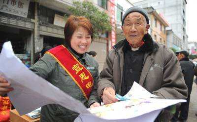 12月2日,宣恩县普法宣传志愿者在为沙道沟镇的村民解答法律问题。今年是我国实施“六五”普法规划的启动之年。从当日起,该县司法、水利、计生、卫生、安监、统计、总工会及电力公司等20余家单位和部门的工作人员进乡村、进社区、进学校,围绕“深入学习宣传宪法、大力弘扬法治精神”的“12•4”全国法制宣传日活动主题,开展法律咨询、法制讲座、发放宣传资料、举办法治文艺演出等宣传活动,把法律知识和法制精神送到群众中,进一步增强人民群众的宪法意识、公民意识、爱国意识和民主法制意识。(本报视界网田丹、张丽丽)