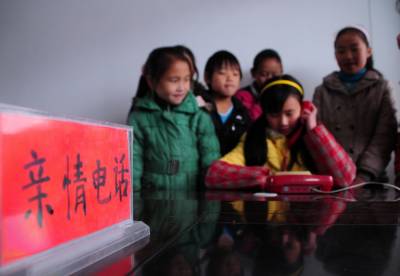 宣恩:“亲情电话”温暖留守学生心怀 12月1日,宣恩县沙道沟镇中心小学几名留守学生正通过“亲情电话”与在外地打工的父母交谈。今年,该县组织各中小学相继开通了亲情电话,确保了留守学生一周和父母通一次电话,时刻保持联系畅通,使学生能够安心,父母能够放心,成了留守儿童和父母之间的桥梁纽带。本报恩施图片库 李以国 摄 13997771030