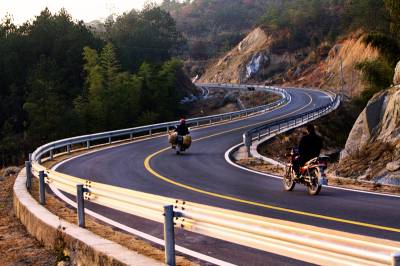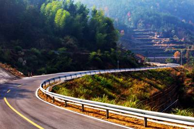 大别山红色旅游公路 黄梅境内全长32.7km,起于大河镇四渡河村与蕲春县青石镇梅祠堂村相交处界岭,止于黄标线黄梅县行政服务中心,总投资1.1亿元。其中新建路段长10公里,全部位于崇山峻岭之中,平均海拔500米。当我开车爬上这传奇的天路,尽情饱览这张长卷,我更为感叹:它也是一条最美的公路。黄梅段的美,不仅美在路本身,也美在路边的景致。